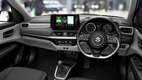 Swift's interior cabin is orientated around enhancing driver experience, thanks to a premium dual-tone colour scheme, large 9-inch multimedia display, and all central controls intentionally angled towards the driver.