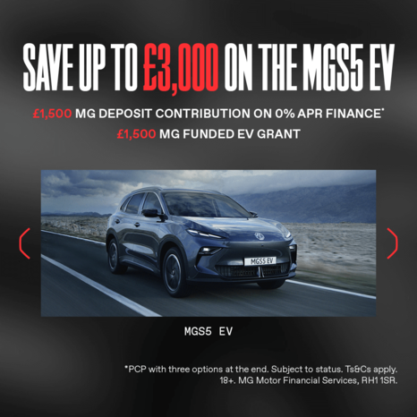 Offer subject to availability. Personal Contract Purchase. Finance subject to status, Ts&Cs apply. Applicants must be 18+. Finance by MG Motor Financial Services, RH1 1SR. 48 month term. Deposit Contribution only available when vehicle financed through MG Motor Financial Services. At the end of the agreement there are three options: 1) Pay the optional final payment to own the vehicle, 2) Return the vehicle, or 3) Part Exchange the vehicle where equity is available. Offer available until 31st March 2026. Prices correct at time of being published and are subject to change without notice.